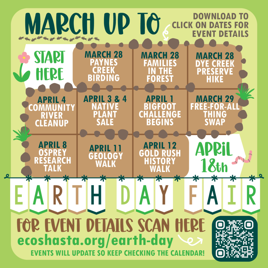 Celebrate Earth Day 2026 with a day of music, learning, and community connection at Caldwell Park in Redding. The Shasta Environmental Alliance is hosting this year’s event, and everyone is invited to come enjoy time outdoors with neighbors, friends, and local organizations working to protect the environment.