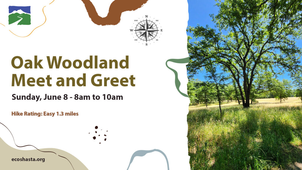 Summer heat is coming for us so let’s take a shady morning walk to discover and discuss the numerous and wondrous ways our beautiful oak trees contribute to a rich tapestry of life. From the water-loving valley oaks to the heat-loving blue oaks, these woodlands support more living organisms than any other terrestrial ecosystem in California. Shasta Environmental Alliance’s hike leader and naturalist, Juliet Malik will guide you on this walk to observe and discuss both plant and animal residents of the oak community. From the raucous acorn woodpecker and impertinent California ground squirrel to the ubiquitous manzanita and poison oak, there is no shortage of “did you know” facts Juliet can throw at you!